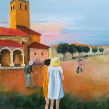 De parents espagnols et d'un mari anglais, PGUS s'inspire de ces différentes cultures, de ces différentes couleurs, et histoires. Mais l'une de ses plus grandes inspirations est le pueblo, son village de cœur: Pajares de Adaja. Un village au coeur de l'Espagne, entre champs, pinèdes, tournesols, rivière et lumière! Représenté dans différents styles, techniques et angles, ce village infuse sa grande créativité, lui rappelle cette grande liberté et cette profonde respiration qu'elle retrouve chaque été.